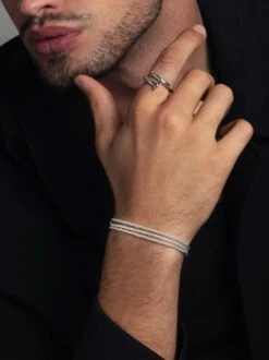 Nialaya Men’s Ceramic Flatbead Bracelet In Blue And Sterling Silver