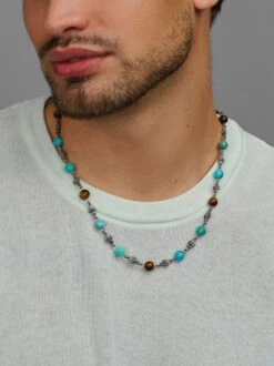 Nialaya Men’s Sterling Silver Bracelet With Nepalese Lampwork Beads