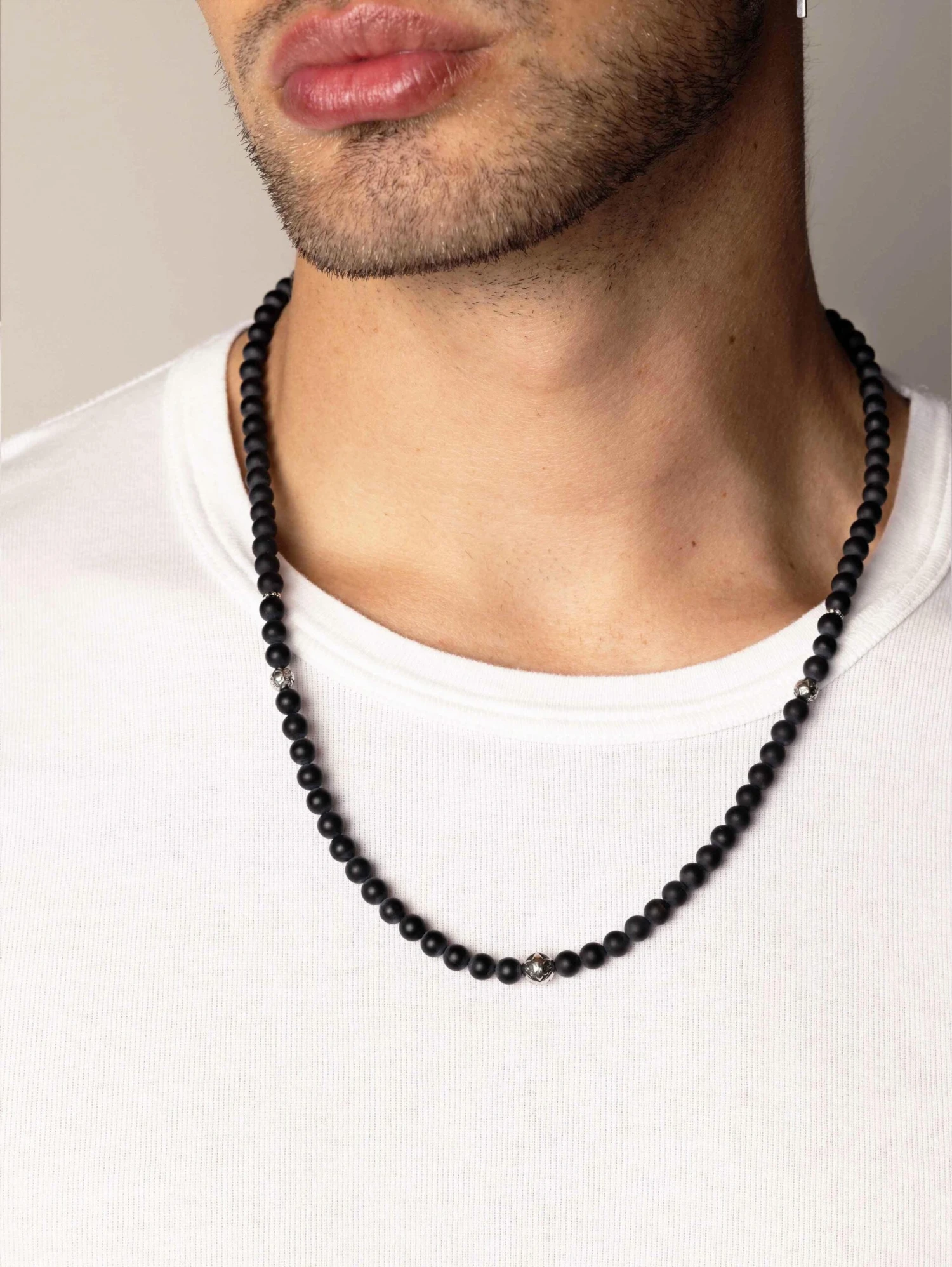 Create a classic look with this black onyx and silver combination. Strung by hand in our Los Angeles studio, this piece is a must-have!