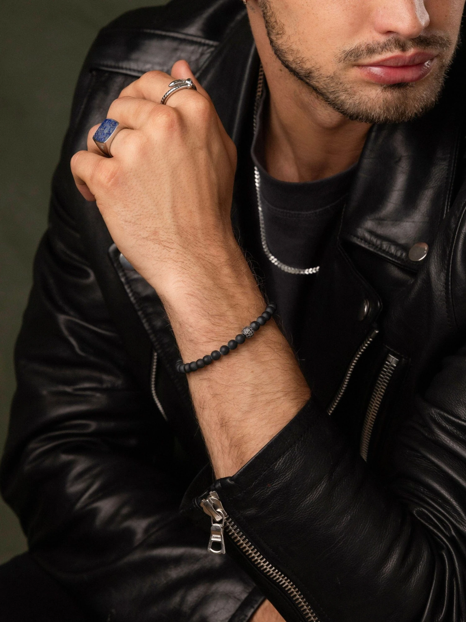 Introducing our sleek and sophisticated Onyx Beaded Wristband with Black Diamond Bead, a stylish accessory that adds a touch of luxury to any outfit.