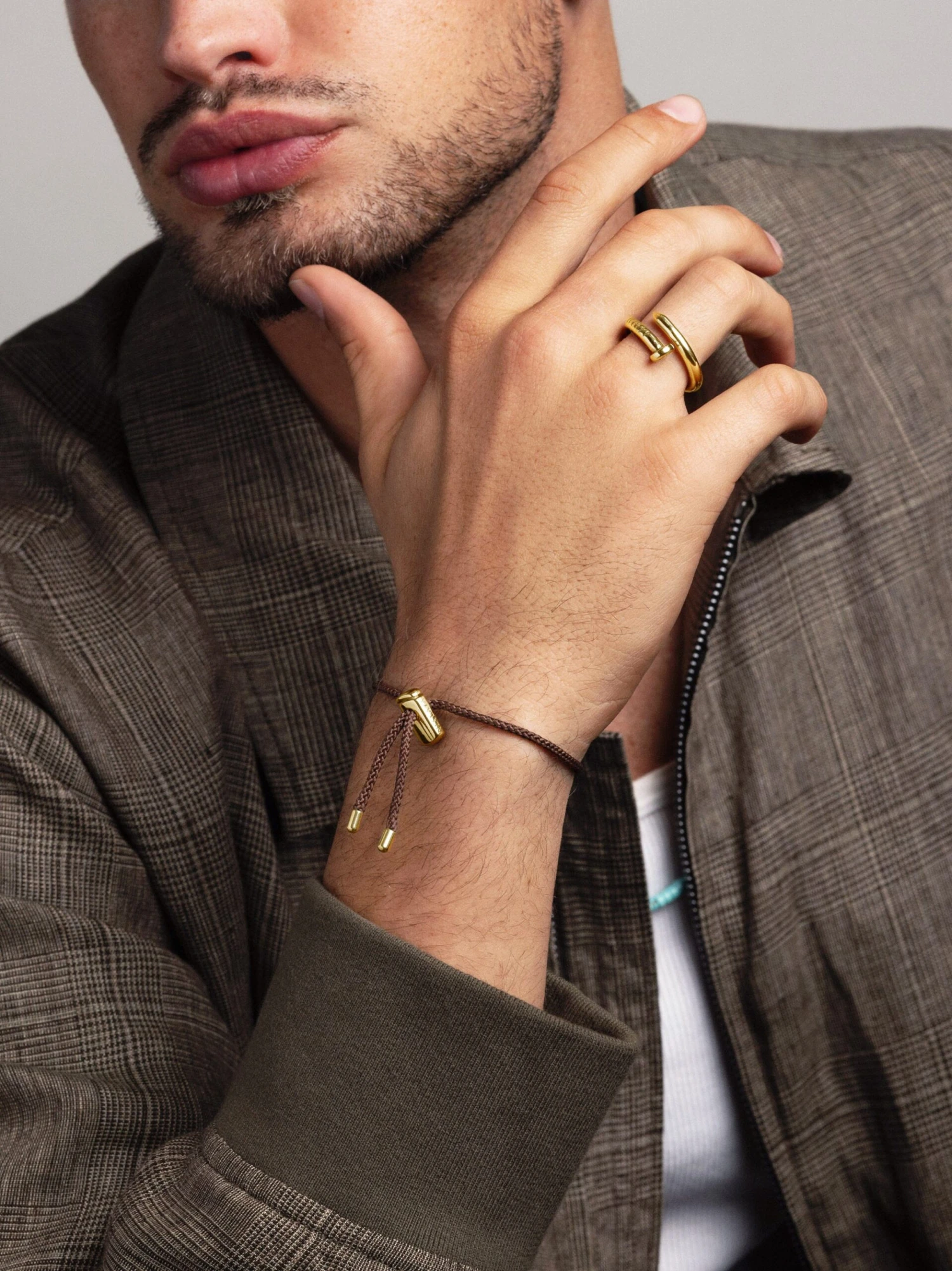 Our Gold String Bracelet is simple yet unique. The adjustable lock features our signature Fleur De Lis embossing, making this piece your everyday favorite.