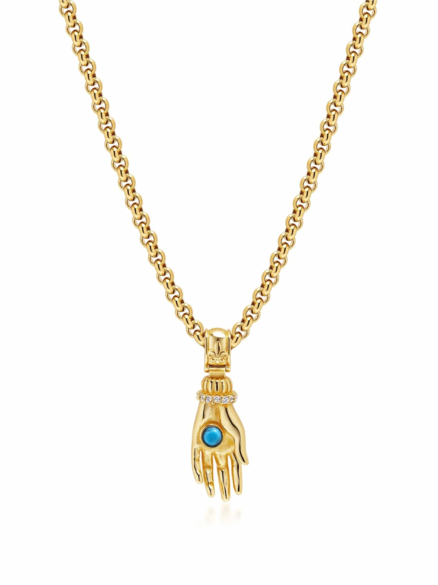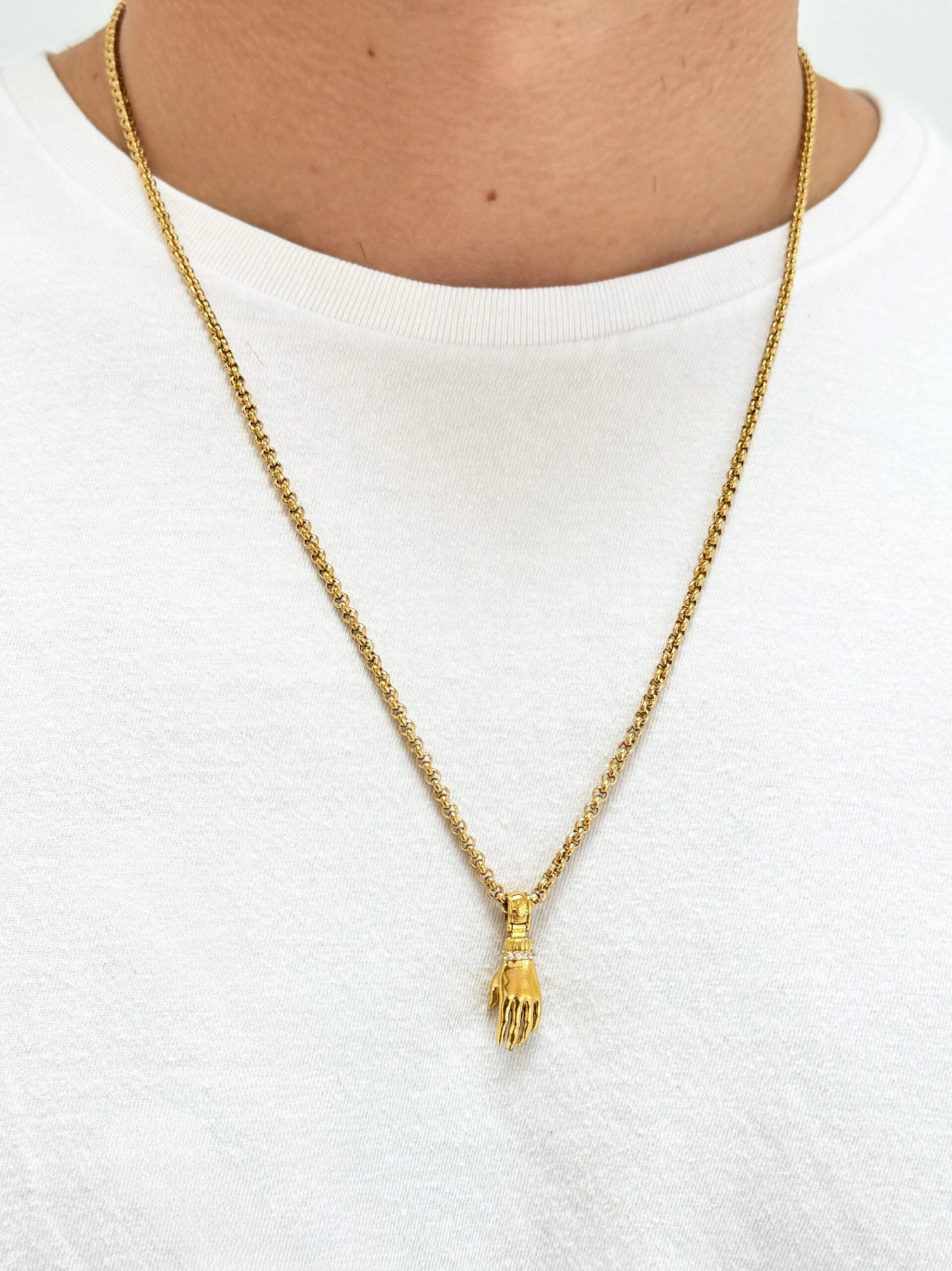 Whether worn solo or layered, the Guardian Hand Pendant adds a meaningful touch to any look—offering both men and women a bold yet spiritual accessory that transcends trends.