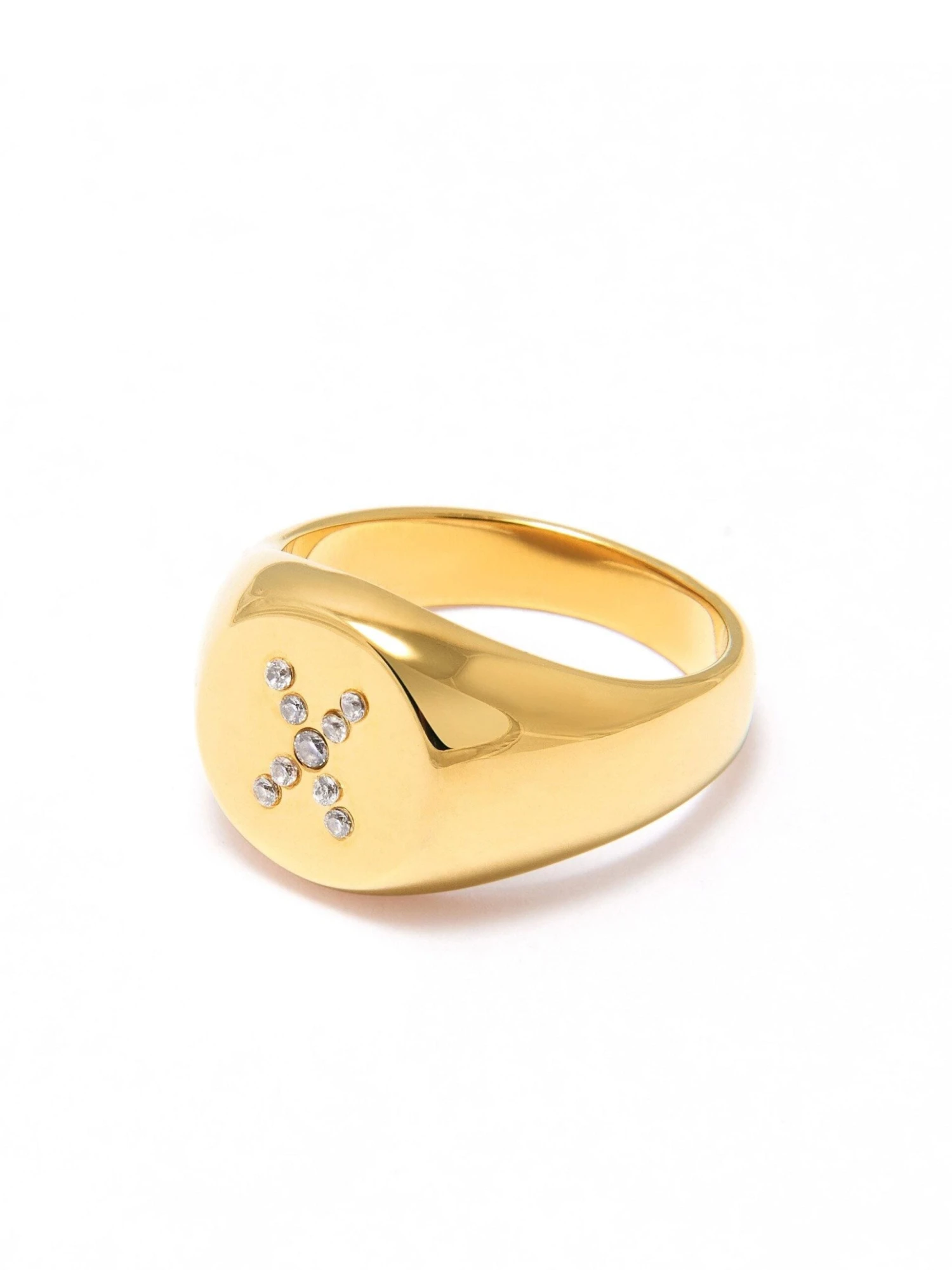 - Signet Ring in Stainless Steel with 18K Gold Finish
