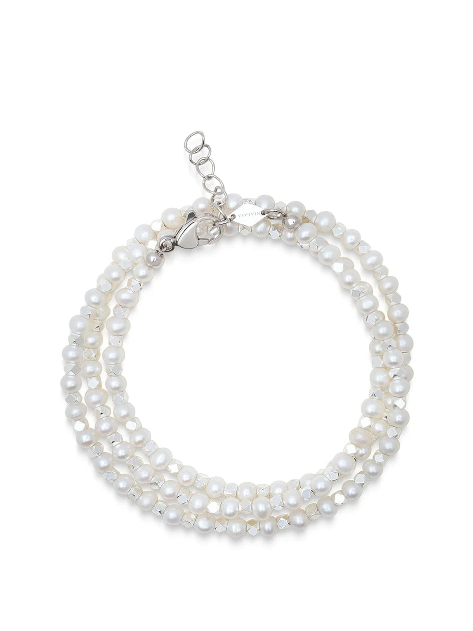 Strung by hand in our LA studio from beautiful baroque freshwater pearls and silver dividers, this necklace will add a unique touch to all your looks. Wear this stunning piece solo or layered, or switch it up and wear it as a wrap-around bracelet. We use cultured pearls from oysters and freshwater mussels that we select by hand for all our jewelry.