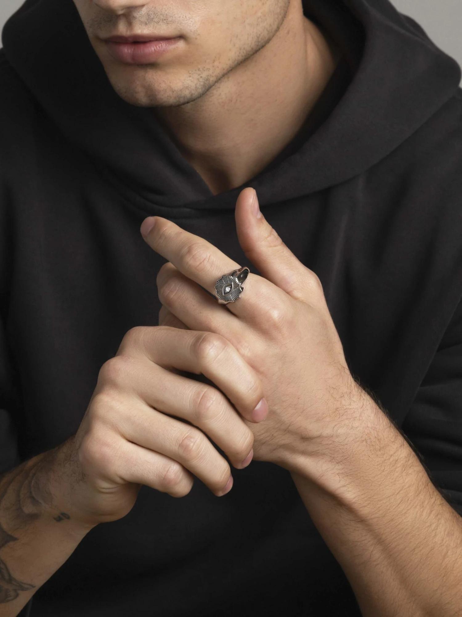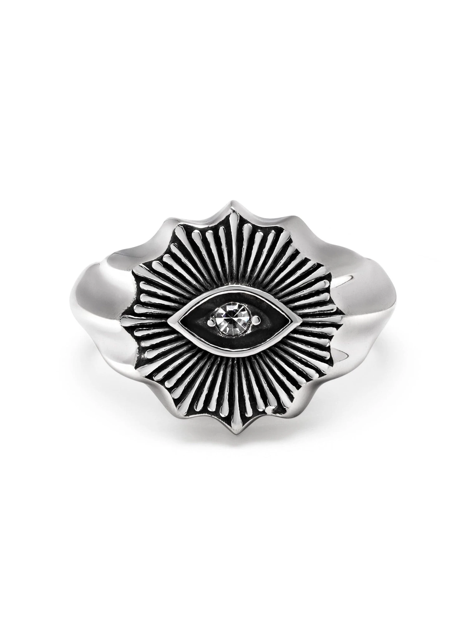 Behold the allure of mysticism and elegance with our Vintage-Inspired Evil Eye Ring adorned with a Clear Cubic Zirconia—a captivating fusion of ancient symbolism and timeless sophistication. This intricately designed ring features the iconic evil eye motif, a symbol believed to ward off negativity and evoke protective energies. The vintage-inspired setting enhances the ring’s charm, while a clear cubic zirconia stone adds a touch of sparkle reminiscent of old-world glamour. Elevate your style with this unique piece that seamlessly blends the mystical with the luxurious.