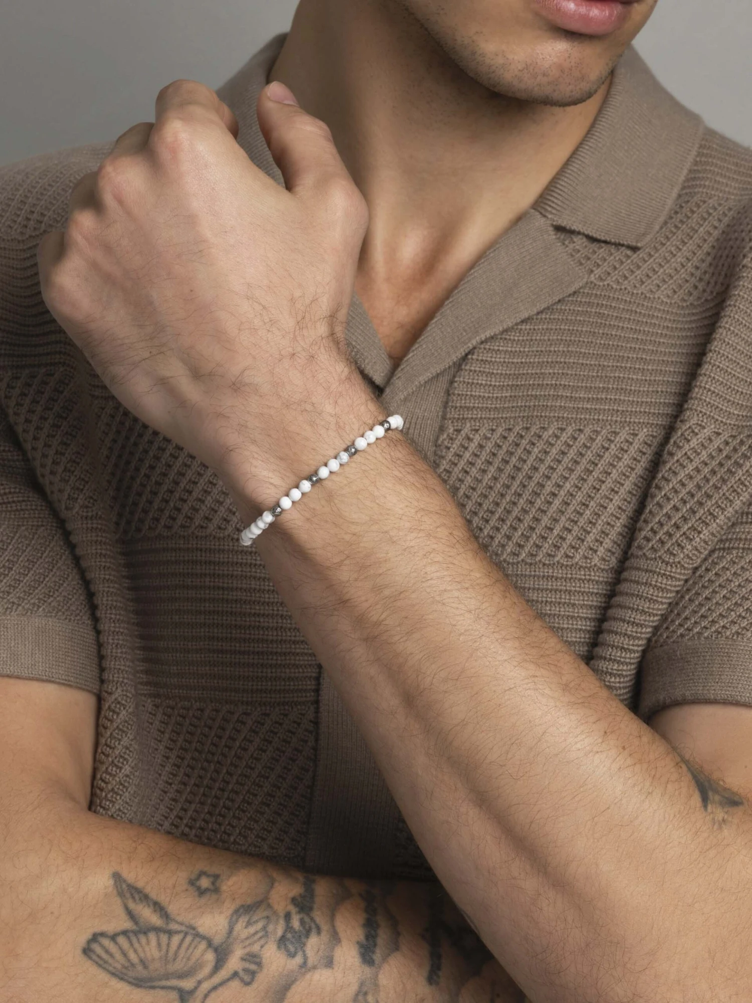 Strung with white Howlite, this bracelet will add a touch of bohemian luxury to your looks. This clean color combination creates the perfect, light summer look. It’s strung on an elastic strand to slip on with ease. Pair it with a silver bangle for a cool, layered look!