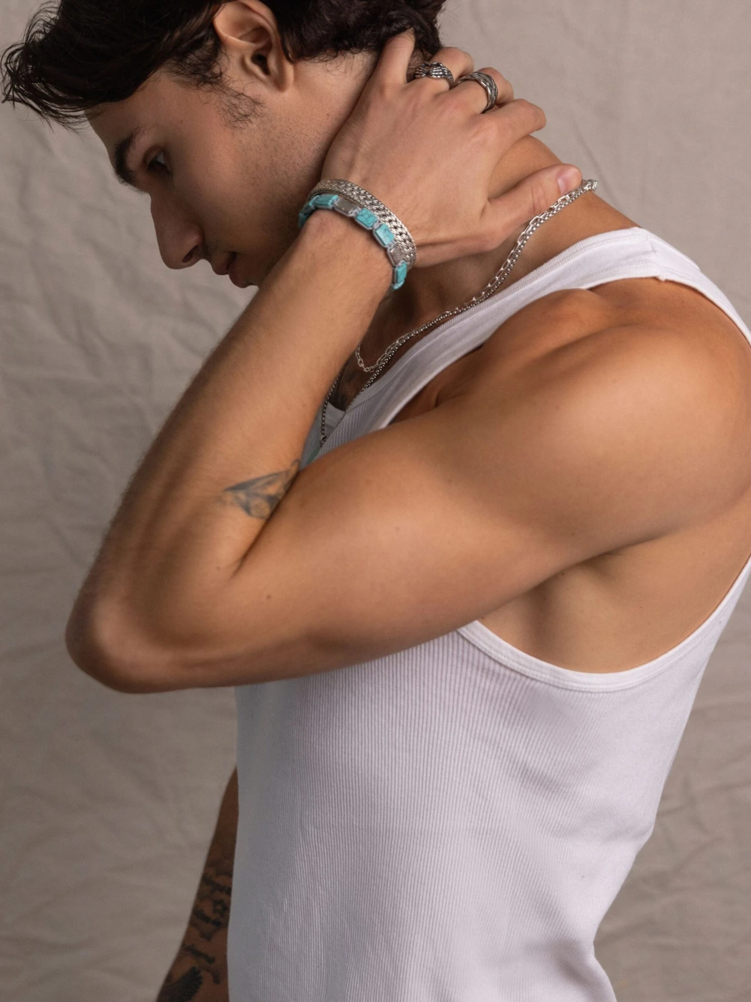 Combining vibrant turquoise with bright stainless steel, this handcrafted beaded bracelet is an elegant piece that will lend all your looks a rich touch. Layer with a thinner silver bracelet for a cool stacked finish!