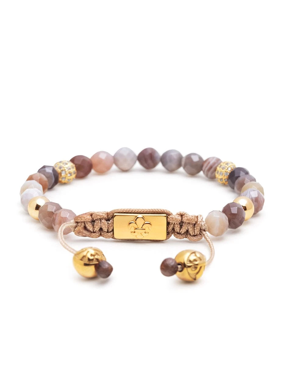 - 6mm Botswana Agate, Hollow Gold and Clear CZ Diamonds