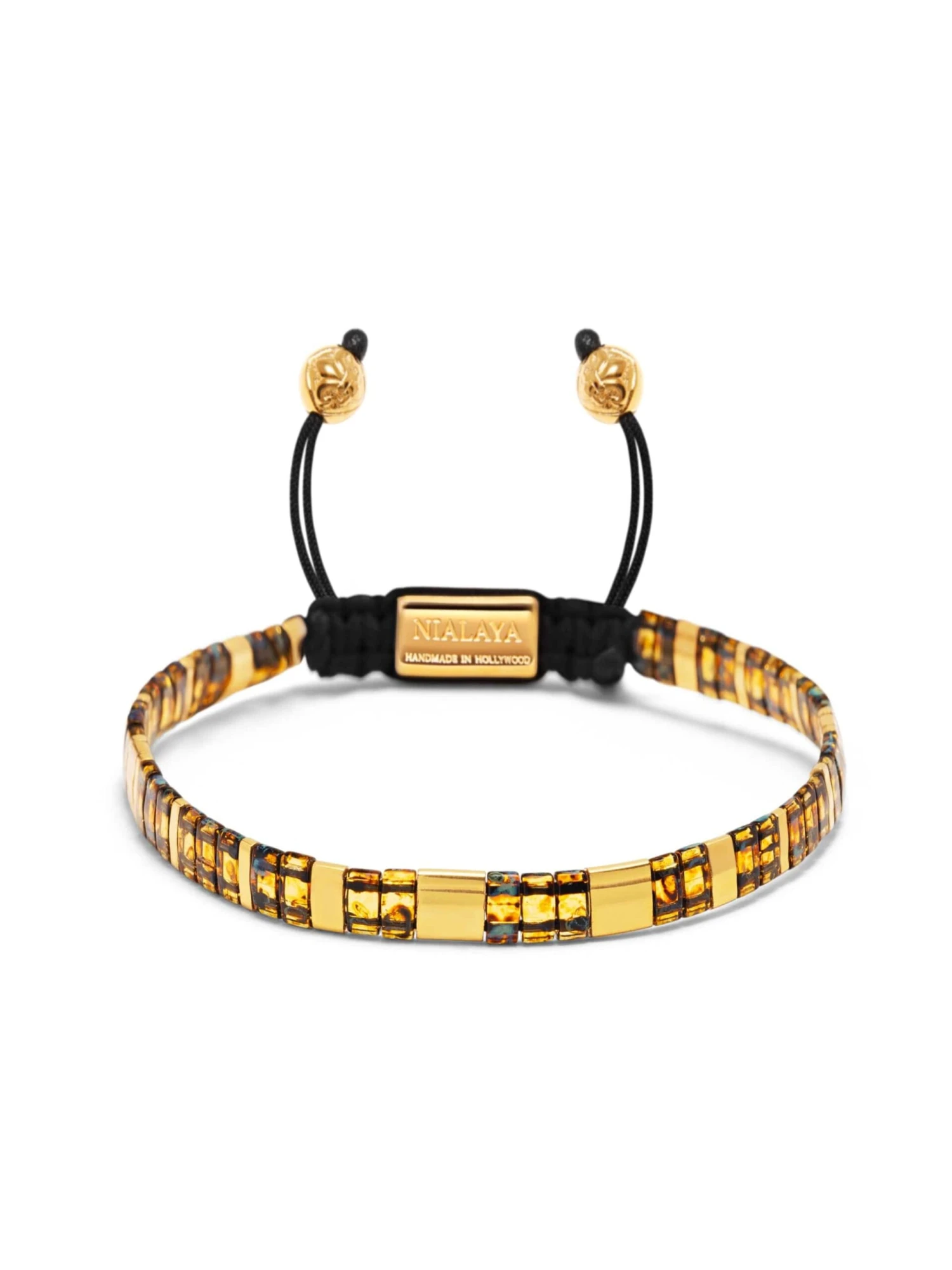 The amber beads exude a rich, earthy warmth, while the golden accents add a touch of opulence and glamour. Whether you’re dressing up for a special occasion or adding a touch of refinement to your everyday ensemble, this bracelet is the epitome of understated luxury. Embrace the unique fusion of colors and craftsmanship, making a statement that transcends trends.