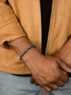 Nialaya Men’s Sterling Silver Faceted Beaded Bracelet With Lapis Lazuli