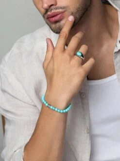 Nialaya Men’s Sterling Silver Beaded Bracelet With Turquoise