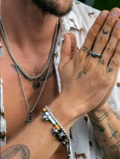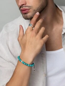 Nialaya Men’s Beaded Bracelet With Onyx And Sterling Silver Beads